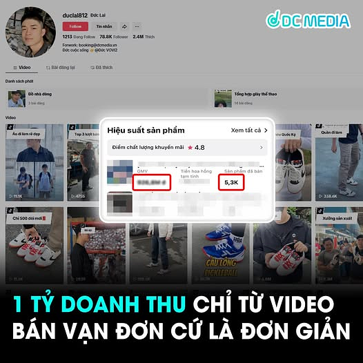 Vào net DC và được hỗ trợ kênh, đặc biệt là các chương trình sale, kênh nhận được các voucher ưu đãi liên tục giúp tăng doanh thu từ sản phẩm. Gần đây nhất phải kể đến video bán vợt cầu lông được quay trong vỏn vẹn 30 phút đạt hơn 28 triệu lượt xem, bán cả vạn đơn hàng.